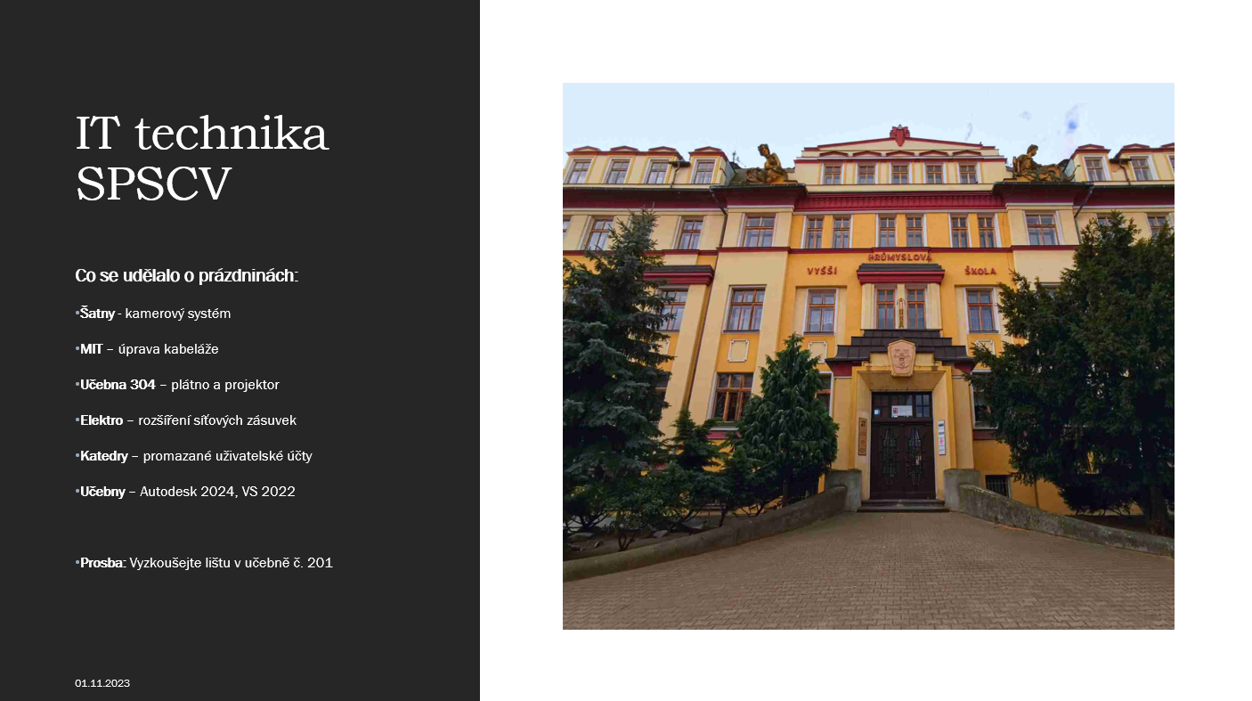 Prezentace na poradu. Úkoly, které se povedlo udělat za předchozí období.
